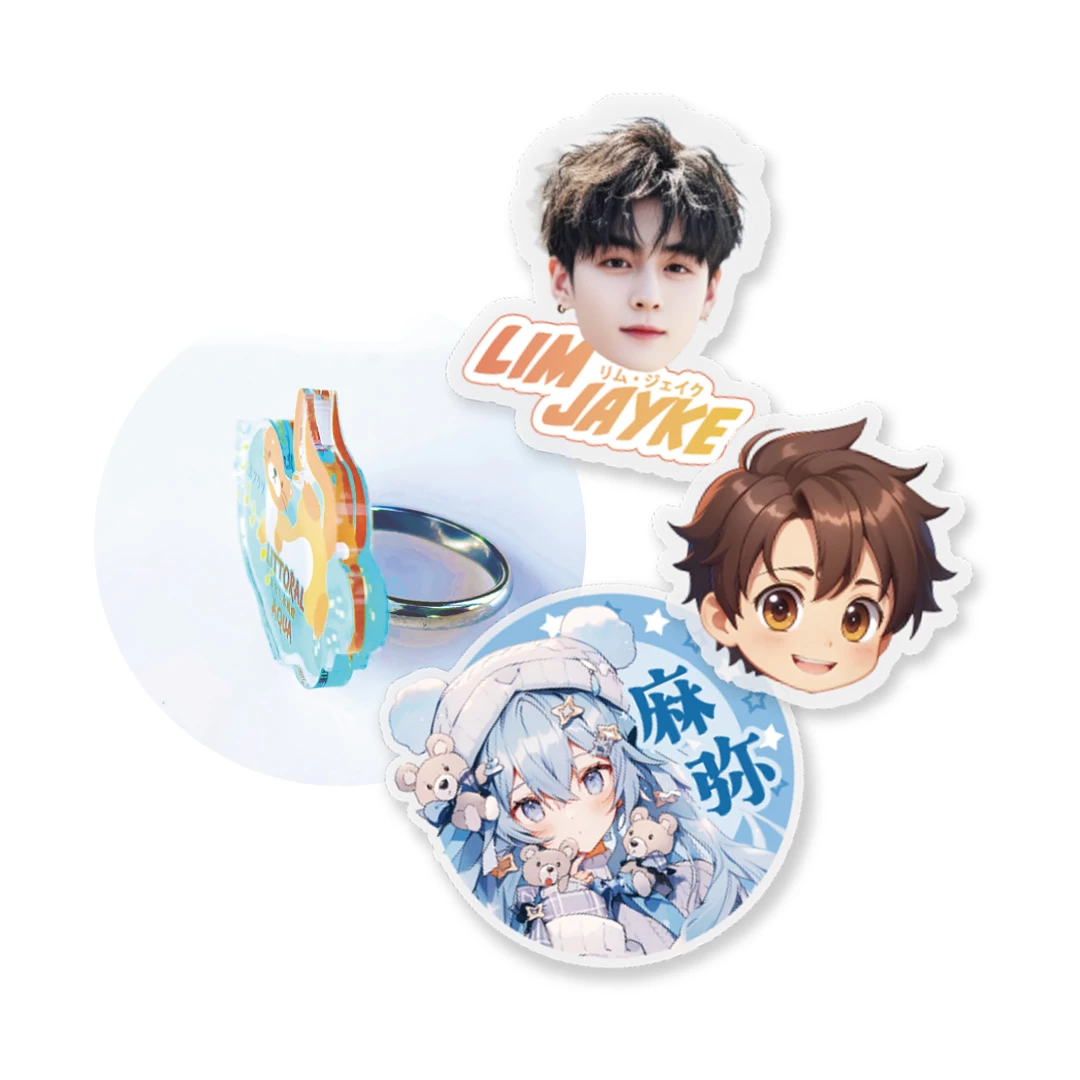 スマートフォンをしっかりホールドできる、ポップアップ式のアクリルスマホグリップを、お客様のオリジナルグッズのデザインとしてOEM製作いたします。アクリルダイカットに対応可能しており、デザインや用途に合わせてオリジナルの形状にすることができます。 グリップ本体は、使用者の指のサイズに合わせて伸縮幅を調整でき、また、指が触れる箇所はやわらかなカーブとなっているため、長時間の使用でも指への負担が少ないのも特徴です。 スマホグリップとしてだけでなく、スマホスタンドとしてや、イヤホンコードの収納にも利用できるので、オリジナルグッズとして多様性にも優れたアイテムとなっております。 販売に必要な資材も取り揃えておりますので、お客様にはデザインを入稿していただくだけでオリジナル商品として販売していただくことができます。 短納期・小ロットでの対応も可能ですのでご不明点がありましたらお気軽にご相談ください。